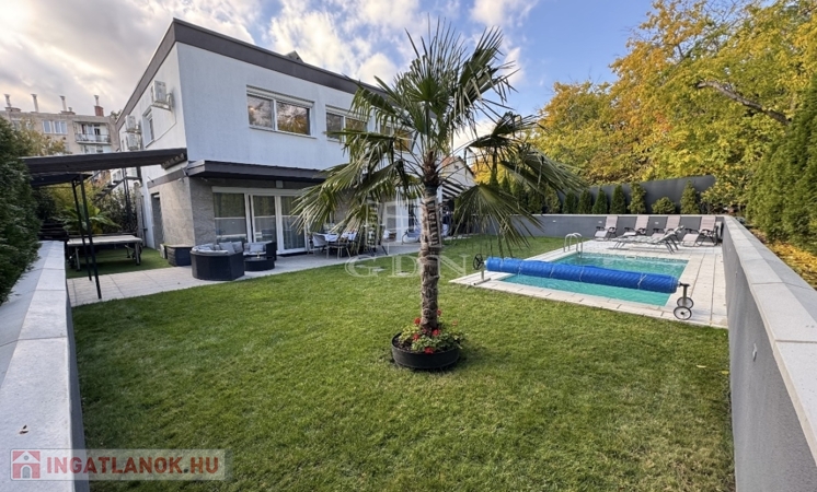 Sashalmon, a Kicsi utcában eladó egy 214 m²-es, prémium kivitelezésű, kétszintes ikerházfél két külön lakóegységgel – akár egybenyitható kialakítással.