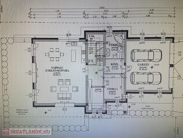 2 autó számára garázs, plusz 3-4 autó számára beállási lehetőség viacoloros beállóra.