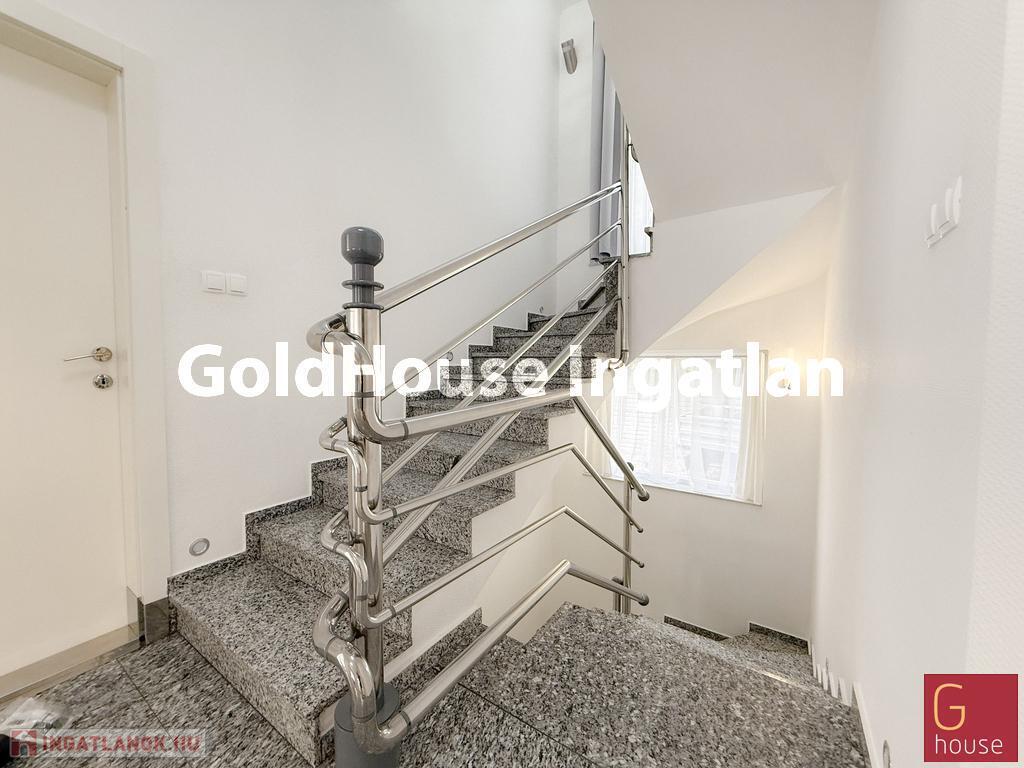 A telek másik oldalán található egy különálló, 255 m²-es apartmanház, amely három külön bejáratú lakásból áll. A földszinten egy ~55 m²-es és egy ~80 m²-es lakás, az emeleten pedig egy tágas, ~120 m²-es otthon került kialakításra. Az ingatlan jelenlegi állapotában is azonnal bérbe adható, így kiváló lehetőséget nyújt passzív jövedelem szerzésére. A lakások közös mérőórás rendszerrel működnek, de igény esetén szétválaszthatók, ezzel is növelve a befektetési rugalmasságot.