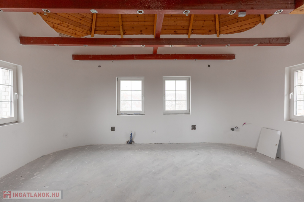A ház 1998-ben készített terv alapján építették egy iroda (toronyépület) és két különálló lakótömbbel. 2025-ben a tulajdonos a belső terek kisebb-nagyobb mértékben áttervezte és teljesen felújította a kornak és lakóház jellegének megfelelően. Zsindely fedésű tetőszerkezet lett felújítva, új hőszigeteléssel. Nyílászárokat teljesen ki lettek cserélve. Gázfűtésű kazán helyett modern Gree Versatti III-as hőszivattyúkkal látják el a központi padlófűtést-, hűtést- és melegvíz ellátást. Teljes villanyszerelés kiépítésre került. A falak és padlószerkezet burkolásra készen áll. Az új tulajdonosnak kedve, ízlése szerint dekorálhatja a belsőtereket. Részletes belsőépítészi – angolszász stílusú élethű 3D - tervek állnak az új tulajdonos részére a ház minden részletére vonatkozóan. A magyar tervező építész, több száz 3D tervdokumentáció és építőkivitelező gárda is rendelkezésre áll, amennyiben igénybe veszi.