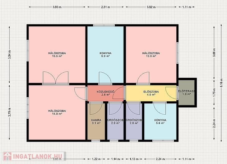 • Fürdőszobák: 2 (mindkettő WC-vel)