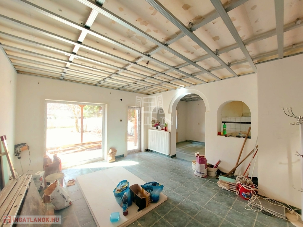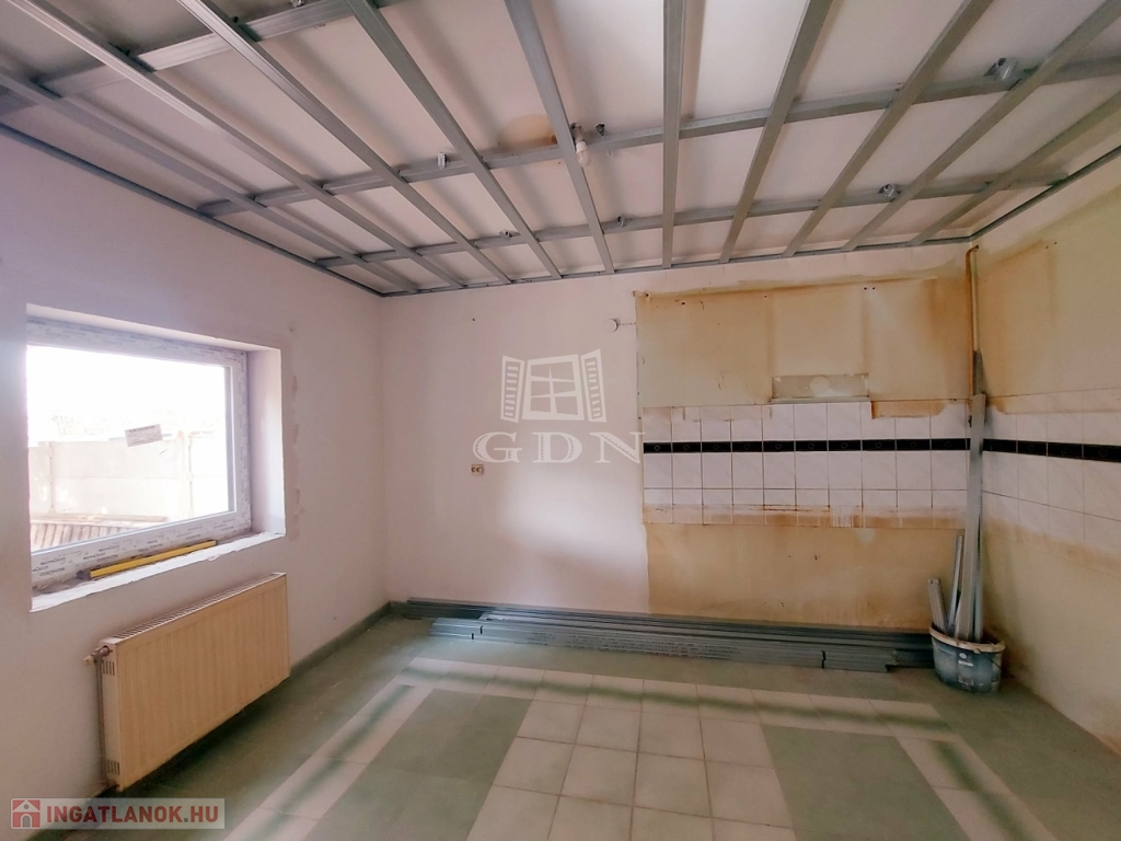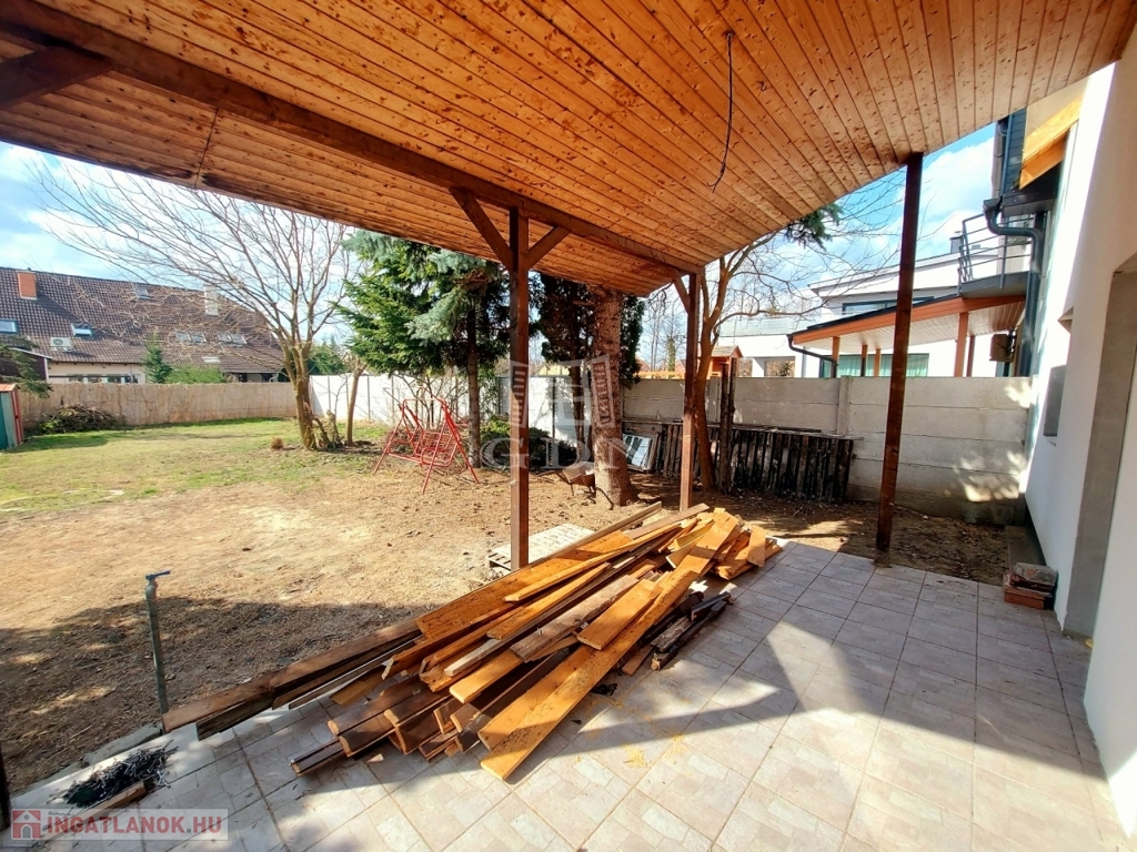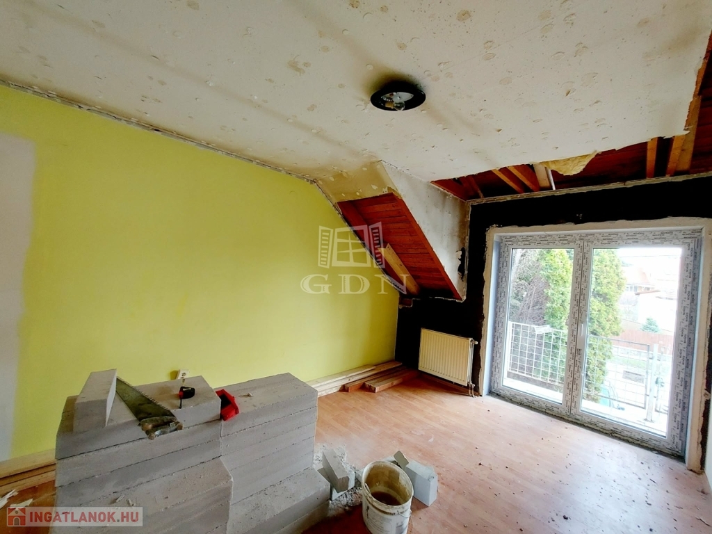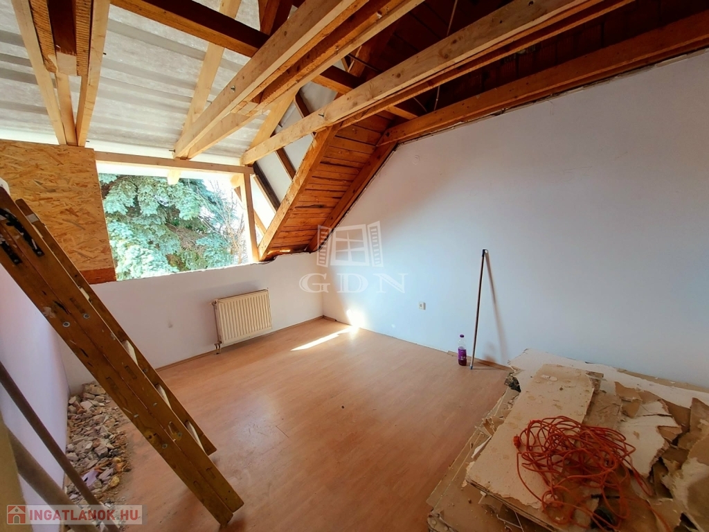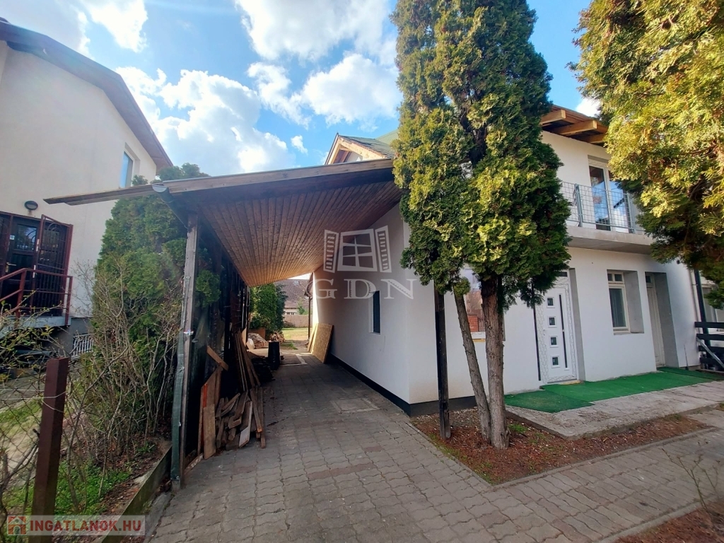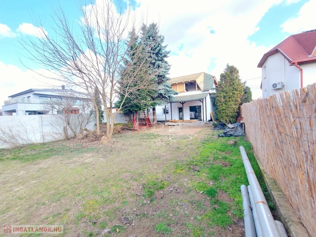 Eladásra kínálok egy 140 nm nagyságú téglaépítésű felújítás alatt álló 2 szintes ikerház felet. A földszinten hatalmas amerikai konyhás nappali, fürdőszoba, és egy külön bejáratú önálló lakrész: szoba (akár iroda) kis fürdőszobával és fedett terasz találhatóak. Az emeleten 4 hálószoba, fürdőszoba, közlekedő várja lakóit. A nyílászárók műanyagra lettek cserélve. A fűtés gázcirkó készülékről működik. A kert rendezett. 3 autó számára fedett beálló biztosított. Az épület hőszigetelést kapott. A tető is meg lesz újítva. Iskola, óvoda, rendelő a közelben.