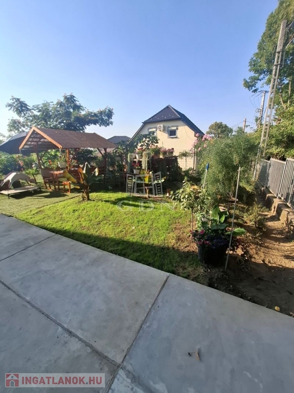 A házhoz tartozik egy 900 négyzetméteres kert, amely kiváló lehetőséget nyújt kertészkedésre vagy akár egy szabadtéri pihenőhely kialakítására.