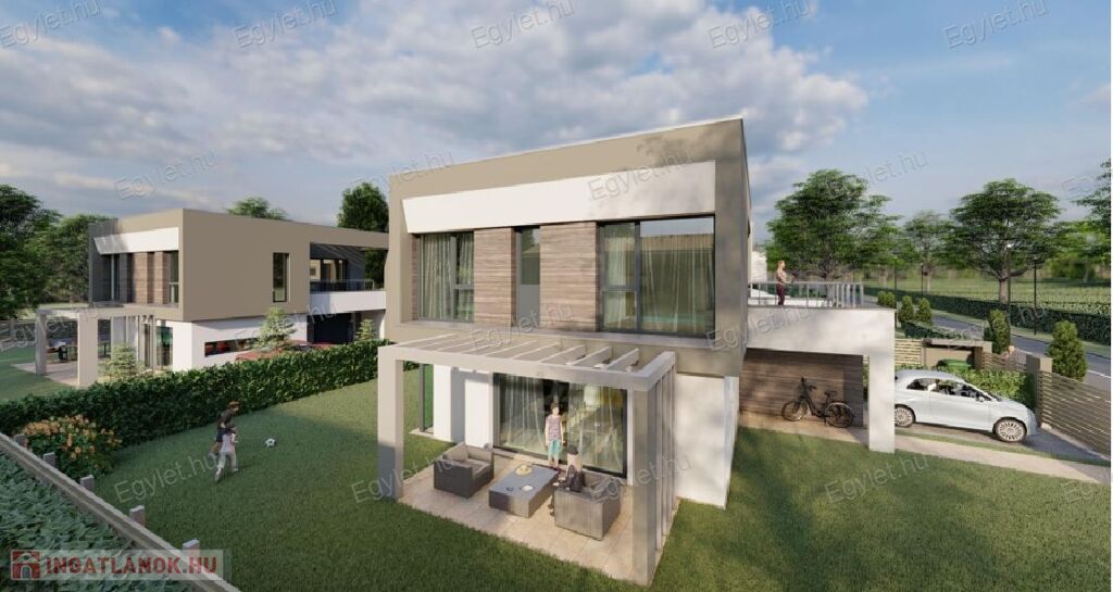 Megvételre kínálunk a 17. kerület egyik legszebb részén, a Szőlőliget lakóparkban, egy minimál stílusú, garázsos, erkélyes, dupla teraszos, 140nm-es, 4 szobás, 2 fürdős önálló luxus családi házat. A teraszok együttes mérete 42 nm. Minőségi alapanyagokból, igényes kivitelezés jellemzi a projektet, ahol a biztonság és a kényelem mellett az energiatakarékosság volt a fő szempont. A ház átgondolt tervezésének köszönhetően kényelmes, otthonos, szellős, viszont ugyanakkor bővelkedik a reprezentatív, elegáns elemekkel. Az ingatlan klímájáról, valamint a használati melegvíz ellátásáról egy modern, energia takarékos, innovatív levegő-víz hőszivattyú gondoskodik akár H tarifás üzemeltetéssel. A hőszivattyú a padlón fűt és a mennyezeten hűt, így télen-nyáron egyöntetű kellemes a hőmérséklet.