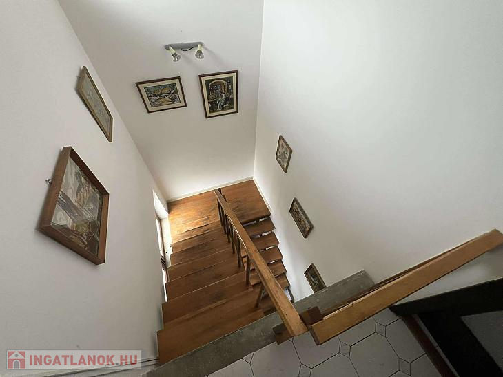 Emelet: 2 szoba, étkezős nappali, konyha, sarokkádas fürdőszoba, mellékhelyiség, 2 erkély. kamra.