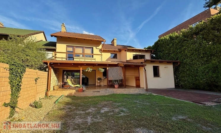 Rákoskeresztúr kertvárosi részén kínálunk megvételre egy 595 m2-es telken lévő, 170 m2-es, 2 szintes, 5 szobás, keleti-nyugati tájolású, napfényes, 30 m2-es terasszal és 5 m2-es erkéllyel rendelkező, sorházi lakást. Az ingatlan a gyakorlatban ikerházként funkcionál. A folyamatos felújításnak köszönhetően állapota újszerű. A felújítás során új, megerősített tetőszerkezet került fel, és megtörtént a víz-, gáz, villanyvezeték cseréje. A lakás padlófűtéssel, gázkazánnal, kandallóval és hűtő-fűtő klímával biztosítja az optimális hőmérsékletet. A hatályos jogszabály szerint, 4 lakásos társasházzá bővíthető. Az ingatlanhoz tartozik 2 autó részére kialakított 27 m2-es garázs, illetve a kerten belül egy 1 autónak, a ház előtt további 3 autónak biztosított a parkolása. A kerti nagykapu és garázsajtó elektromos, távirányítóval nyitható/csukható. A környék infrastruktúrája kiváló, bevásárlási lehetőség, gyógyszertár, kisbolt, óvoda, iskola és bölcsőde pár percre található.