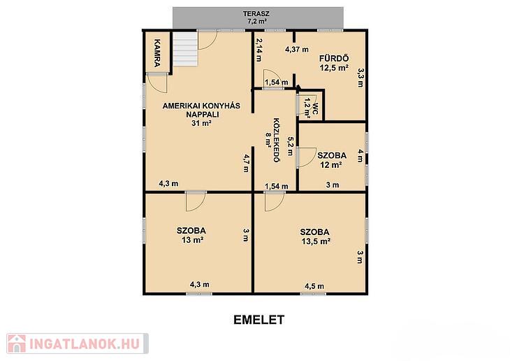 Kialakítás: 3 szoba, amerikai konyhás nappali, kádas + zuhanyzós fürdőszoba, wc, közlekedő, kamra, erkély.