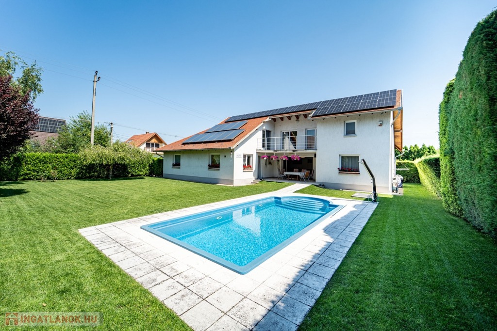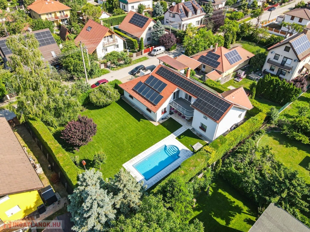 Rákoscsaba-újtelepen, a XVII. kerület csendes, családi házas övezetében eladó a képeken látható, 1146 m2-es duplatelekre 1996-ban épült 2 szintes, 2 nappali + 3 hálós plusz wellness helyiséges, A+++ energetikával rendelkező, szaunával és medencével, napelemmel és gyönyörű, kertész által gondozott kerttel rendelkező, szabadonálló családi ház.