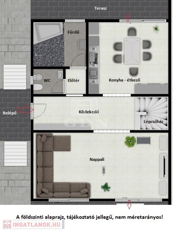 A teraszok és a belépő mérete, NINCS beleszámolva.