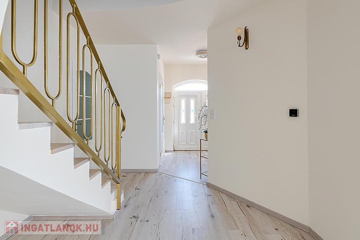 Emelet: 3 szoba, 3 fürdőszoba, gardrób, mosókonyha.