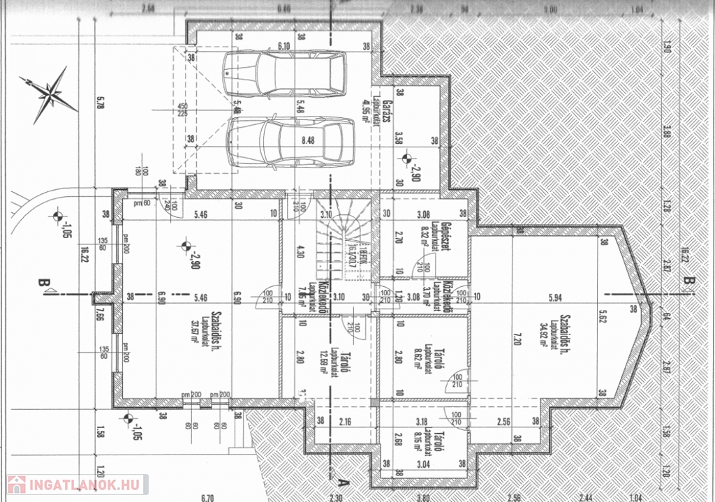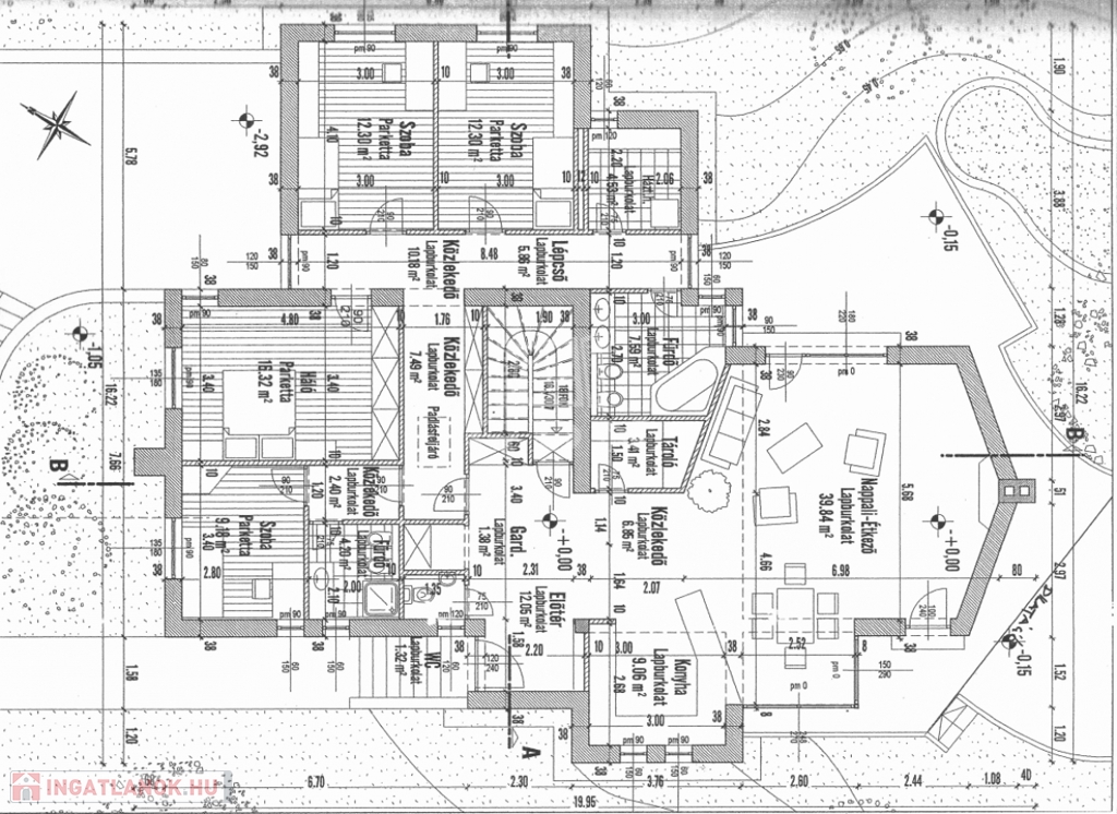 A ház alapterülete nettó 160 m2, a pinceszint szintén160 m2, a telek 850 m2.