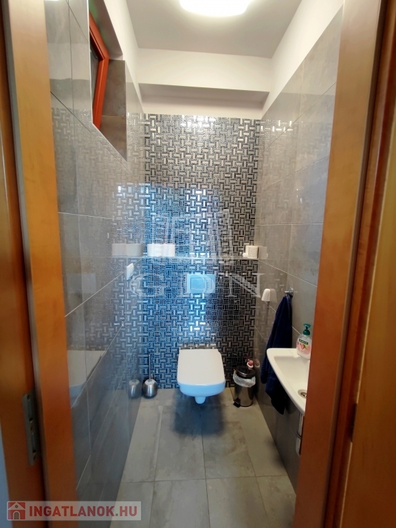 Az előkert felől KÜLÖN BEJÁRATtal kialakításra került egy önálló LAKRÉSZ saját fürdővel és konyhával, mely akár IRODÁNAK is használható.