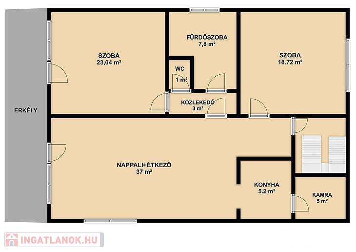 ELRENDEZÉS: 2 szoba, étkezős nappali, konyha, zuhanyzós + kádas fürdőszoba, mellékhelyiség, 2 erkély, kamra.