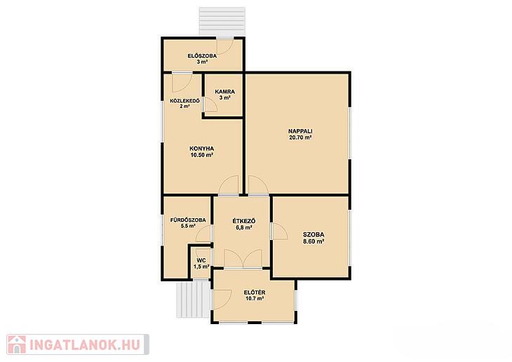 ELRENDEZÉS: nappali, szoba, előtér, fürdőszoba, mellékhelyiség, kamra, előszoba, pince.