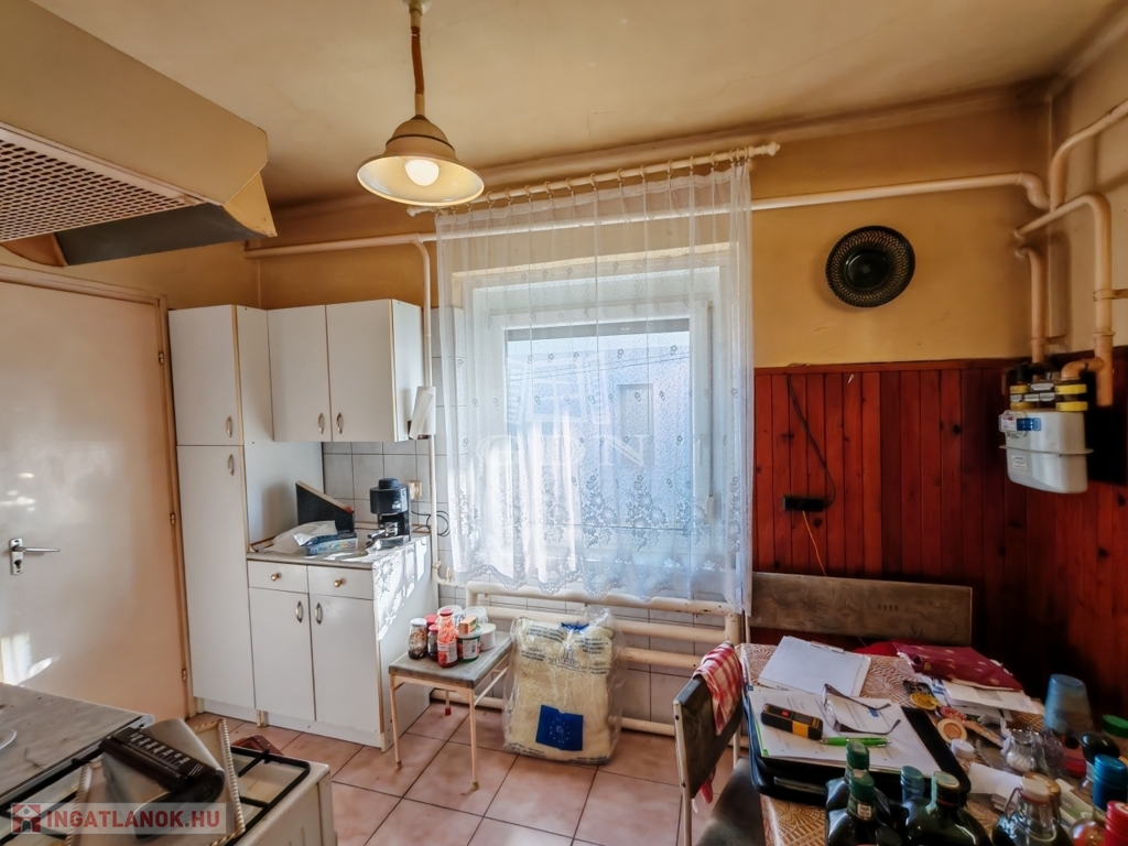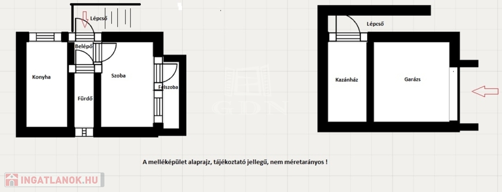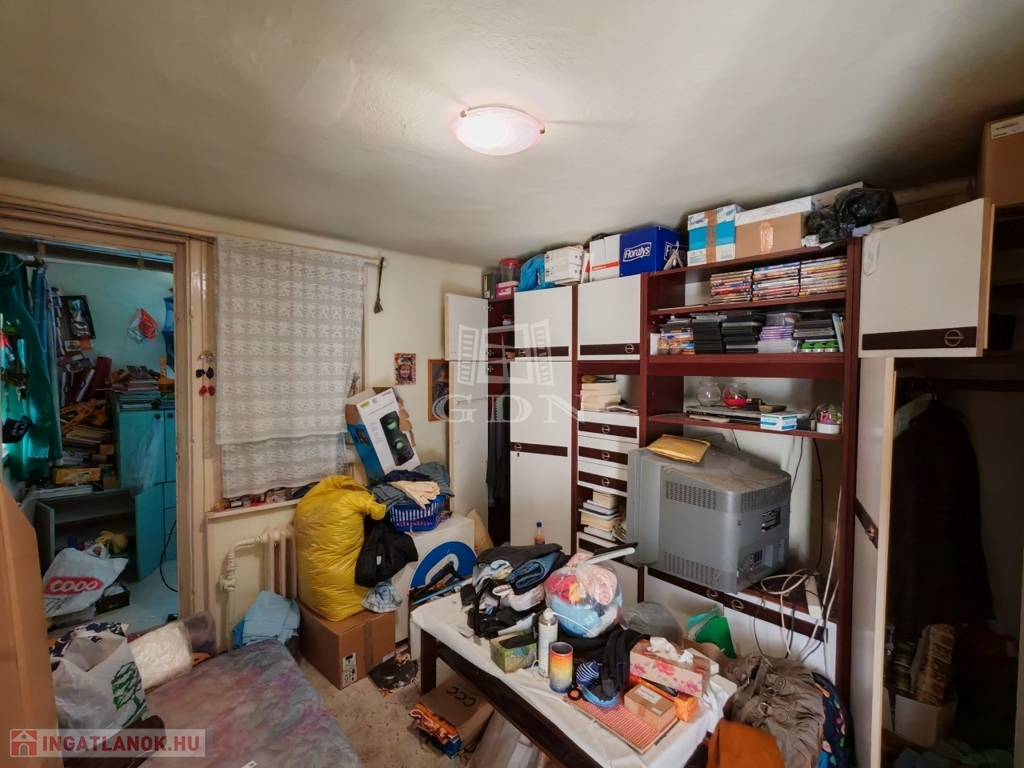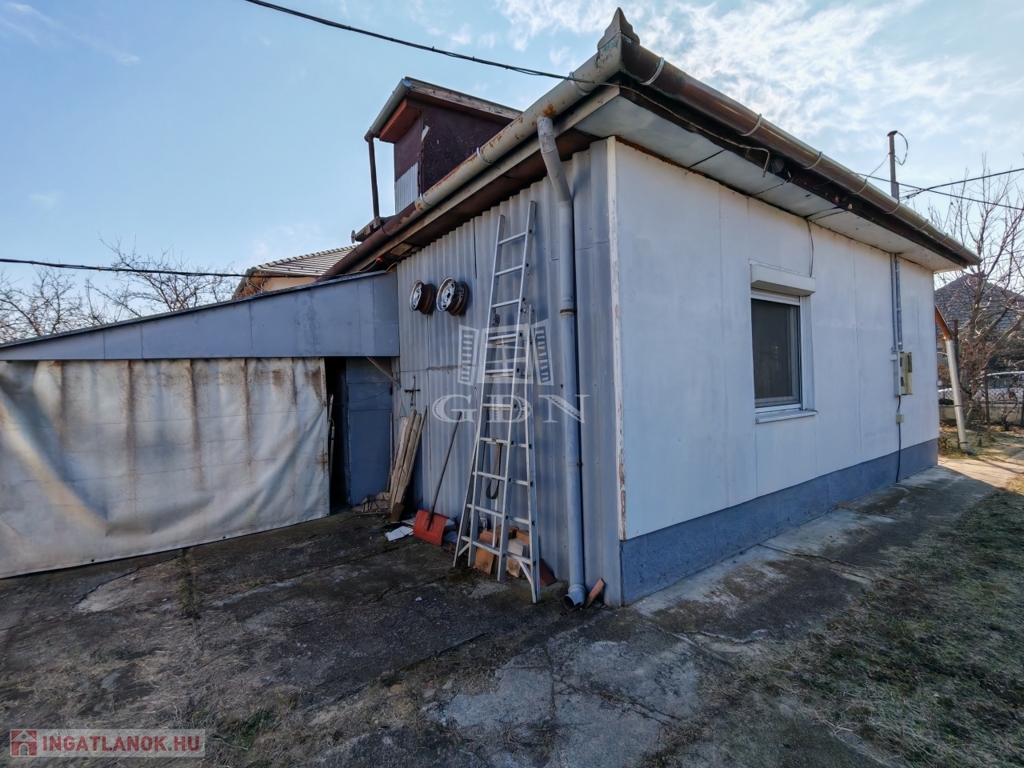 A telken hátul lévő, szintén téglaépület, pince szintjén garázs és kazánház, az emeleti szinten, konyha, belépő, fürdő, szoba, és beépített terasz van. Ez is ALKALMAS LAKHATÁSRA!