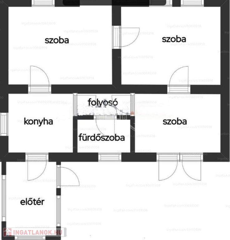 A ház bruttó 90 m² alapterületű, elrendezése praktikus: