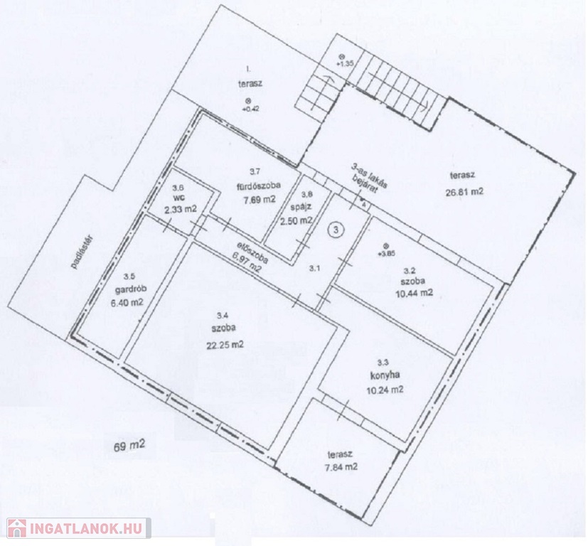 Ez egy 2 lakásos, ügyvéd által szerkesztett használati megosztással rendelkező családi ház. (A földszint egy teljesen külön bejáratú lakás.) A tetőtéri önálló bejáratú, saját, kombi (meleg vizet + fűtést is nyújtó) cirkófűtéssel is rendelkező lakás a hátsó kertre néző, hatalmas 26, 81 nm-es terasszal és 7,84 nm erkéllyel rendelkezik!