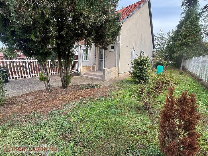 A kert gondozott, egy fedett terasz is található, ami a nappaliból is megközelíthető.