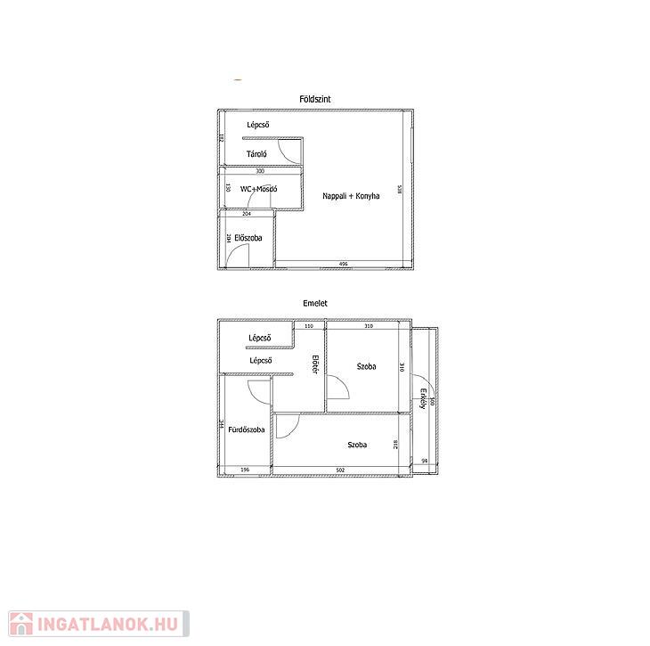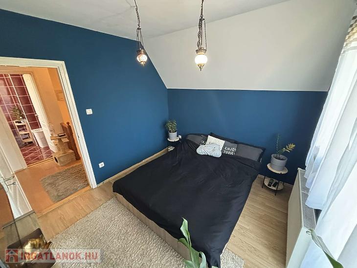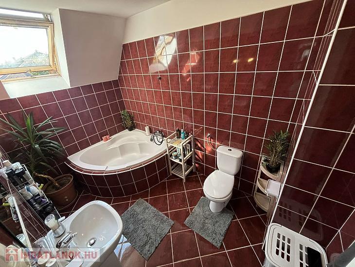 Emelet: 2 szoba, sarokkádas fürdőszoba mellékhelyiséggel, közlekedő és erkély.