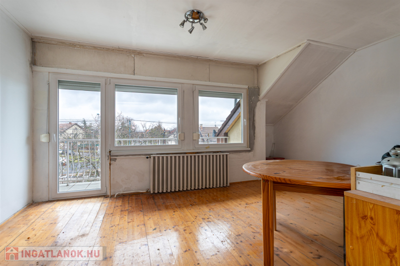 A tetőtér 95,37 m2 és nem volt használatban (4 szoba, melyből egy szoba erkélyes, műterem jellegű, fürdőszoba-wc, közlekedő.)