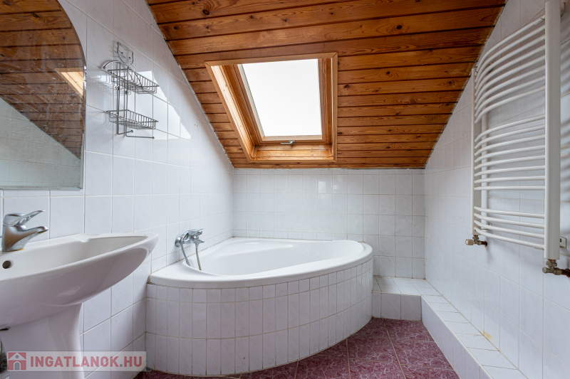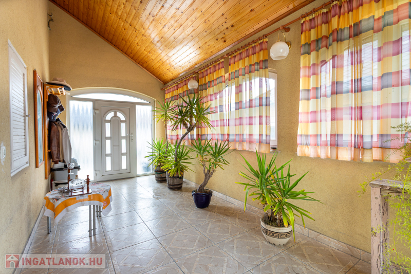 Vasbeton lábazat, tégla falazat, monolit, vasbeton födémek, fa ácsszerkezet, cserép héjalás. Hő- és hangszigetelt, műanyag homlokzati nyílászárók, redőnyökkel. Újszerű, turbós gázcikró biztosítja a radiátoros fűtést és villany bojler a meleg vizet. Riasztó, kaputelefon. Beépített konyhabútor. Rozsdamentes kerítés és korlát elemek. Két állásos felszíni parkoló.
