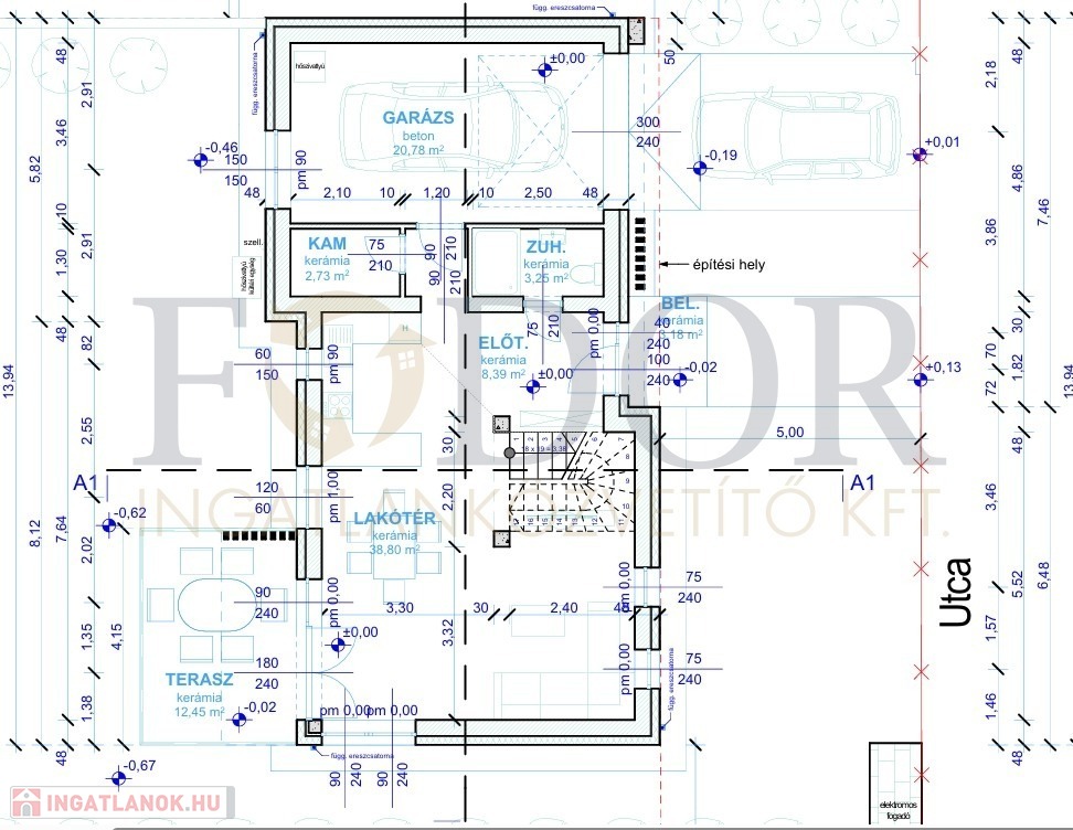 • Telekméret: Önálló családi ház 348 m², Ikerházak külön-külön: 425 m²