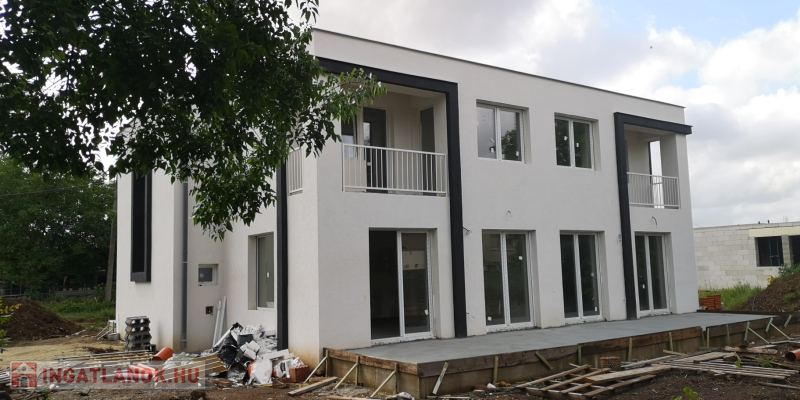 Pestszentlőrinc csendes, kertvárosi részén összesen 152 m2-es, kétszintes, nappali + 4 szobás, 2 fürdőszobás, garázsos, utca felől nézve jobb oldali ikerházi lakás napelemmel 375 m2-es telekrésszel 2025 nyár végi átadással eladó. Infrafűtés, klíma kiállások szobánként, elektromos bojler, műanyag homlokzati nyílászárók 3 rétegű, hő- és hangszigetelt üvegezéssel, hőszigetelt főfalak, tetőtér és aljzat.