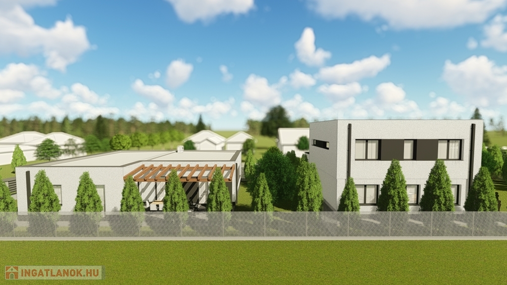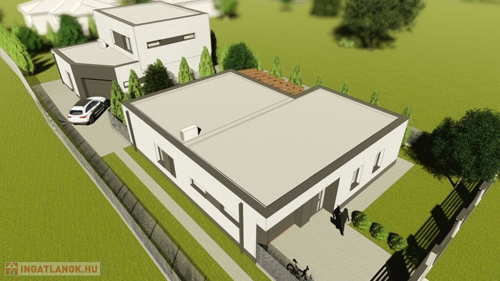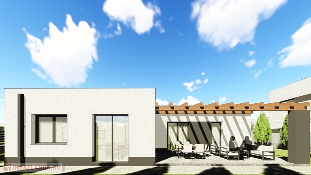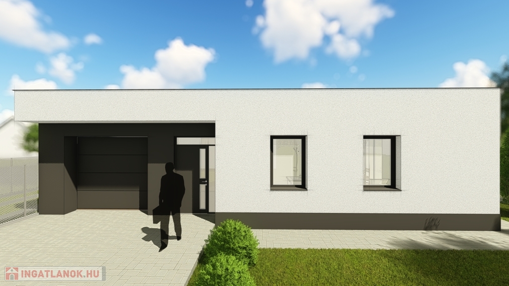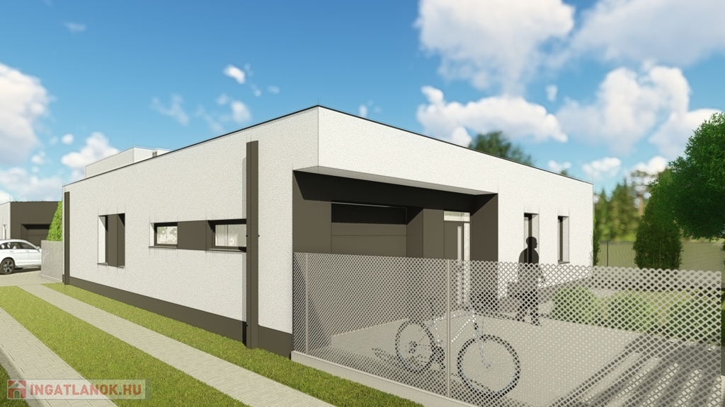 Eladó egy új építésű, földszintes, modern megjelenésű családi ház.