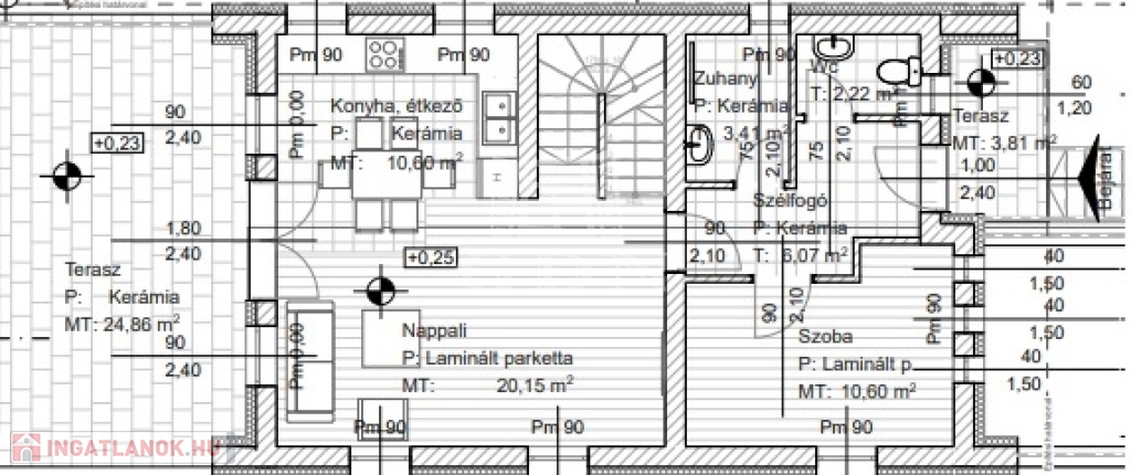 A három szintes otthonhoz tartozik egy 57,81 m2-s garázs, tároló, gépészet, elektromos garázsajtóval, 24,86 m2-s terasz, és egy 3,81 m2-s erkély. A nettó 53,5 m2 -es Földszinten egy tágas amerikai-konyha nappali, zuhanyzó, külön mosdó, hálószoba, közlekedő, előszoba, a nettó 45,57 m2-es emeleten 4 hálószoba, melyből az egyik beépített gardróbbal kialakított, fürdő-mosdóval, közlekedő található. A 3,35 m2-s erkélyre az egyik hálószobából tudunk kijutni.