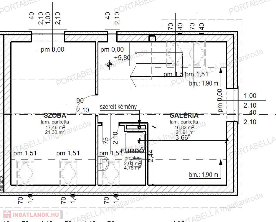 15 cm ásványgyapot szigetelés a tetőben, 20 cm zárófödém, 10 cm EPS hőszigetelés a homlokzati falon.