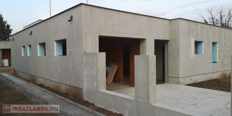 30 cm-es főfalak, 12 cm polisztirol alapú hőszigeteléssel, 10 cm-es tégla válaszfalak. 12 cm. lépésálló aljzat hőszigetelés. Vasbeton födém, lapostető, lejtést képző 25-40 cm EPS hőszigeteléssel. Levegő-víz hőszivattyú biztosítja a padlófűtést és a meleg víz ellátást, inverteres klíma pedig a hűtést. Antracit színű, hő- és hangszigetelt homlokzati nyílászárók, 3 rétegű üvegezéssel és toktoldóval a redőny kialakításhoz. A belső ajtók, szaniterek, hideg, meleg burkolatok, falak festése választható. Épített utcafronti kerítés, elválasztó 3D-s kerítések. Hőszigetelt, szekcionált elektromos garázskapu. Riasztó, elektromos redőny és kapu kiállás vezetékelve. Kerticsap.