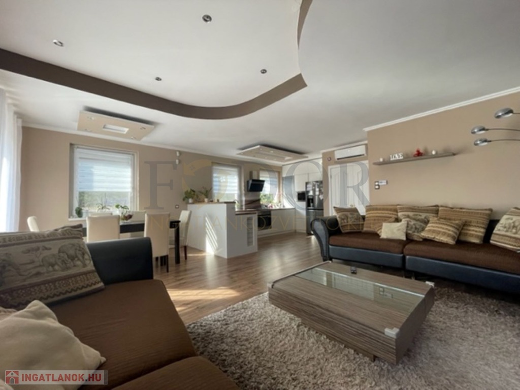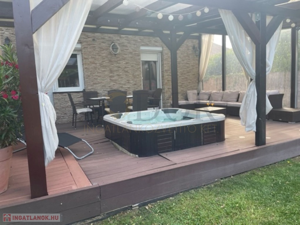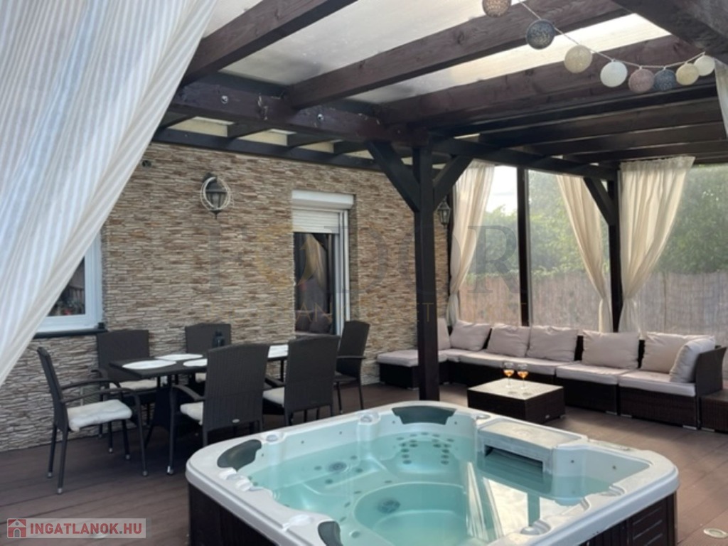 beépítésre. 2019-ben 32 kw-os zárt égésterű kombi gázcirkó cseréje megtörtént alsó szinten padlófűtés, emelti szinten radiátoros fűtés üzemel. 2024-ben 5 KW-os, szaldós rendszerben elszámolt napelemes rendszer került felszerelésre. Az épület számos extrával felszerelt, riasztó és kamerarendszer, 35 nm-es polikarbonáttal fedett és wpc-vel burkolt terasz jacuzzival, kerti halastó, elektromos árnyékoló, automata öntözőrendszer, elektromos motorizált nagykapu, ledvilágítás. Az ingatlan osztatlan közös