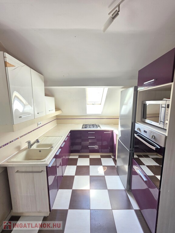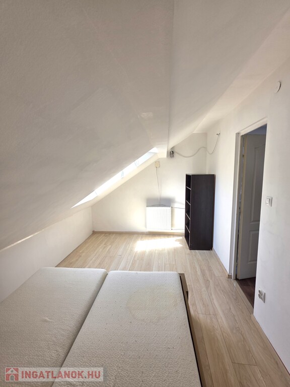 ​Tetőtéri lakás (60 m²): Ideális stúdiólakásnak vagy vendégtérnek. Étkező, konyha egy légtérben található, a fürdőszoba és a nappali az étkezőből nyíik. A nappaliból pedig félszoba nyílik. A lakás állapotát tekintve átlagos, kisebb javítások után azonnal kiadható.