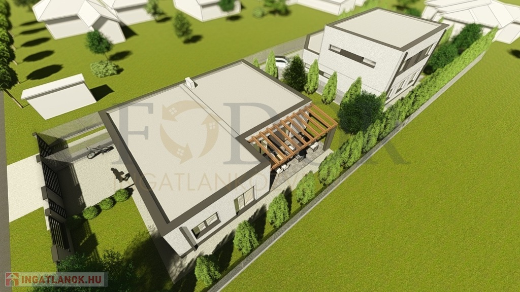 A ház egy osztatlan közös telken épül, ügyvédi használati megosztással, külön közműórákkal és teljesen szeparált bejáratokkal.