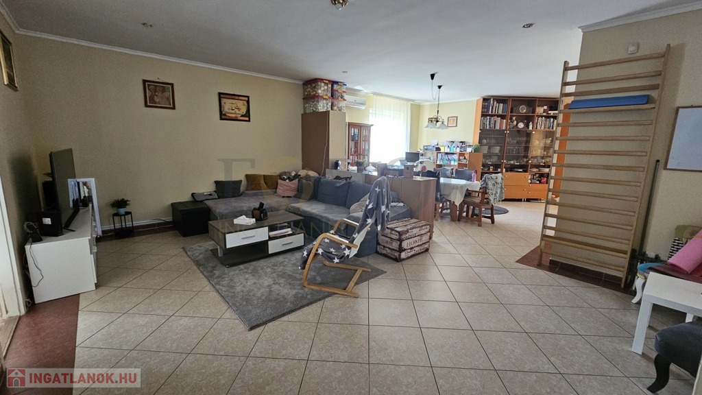Eladó egy különleges kialakítású, tágas és világos családi ház, amely nemcsak otthonként, hanem vállalkozás színhelyeként is tökéletesen funkcionál. Az ingatlan fő élettere az alsó szinten található, 184 m²-en, gondosan megtervezett elosztással, ahol minden a kényelmet és a praktikumot szolgálja, a ház felső szintje már értékesítésre került.