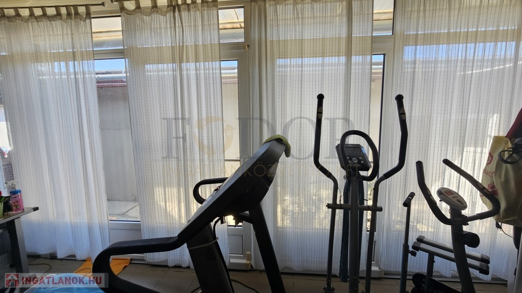 Az ingatlanhoz tartozik egy 80 m²-es, külön bejáratú helyiség, amely jelenleg jógastúdióként üzemel, de kiválóan alkalmas bármilyen vállalkozás számára: