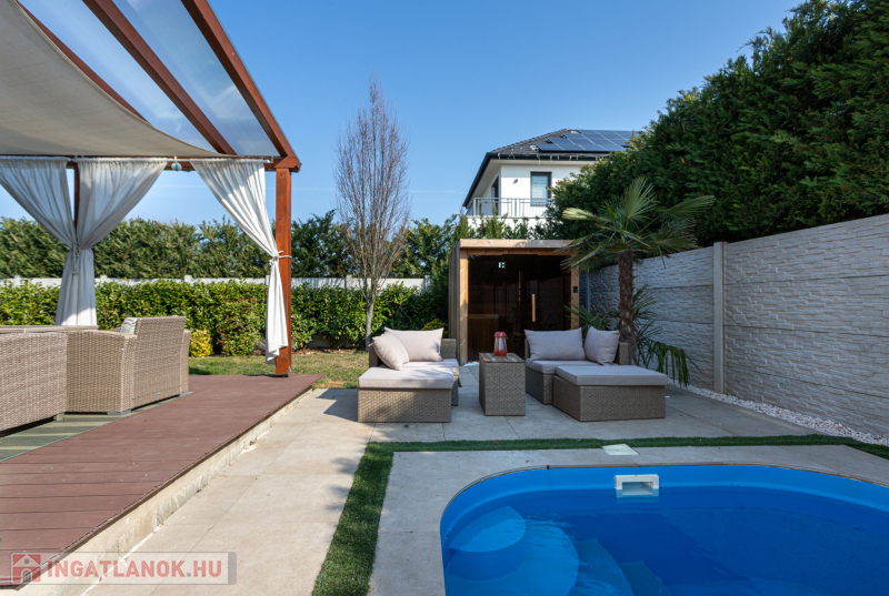 MEDENCÉS, SZAUNÁS ÚJSZERŰ IKERHÁZ ,MAGAS MŰSZAKI TARTALOMMAL, SOK EXTRÁVAL!