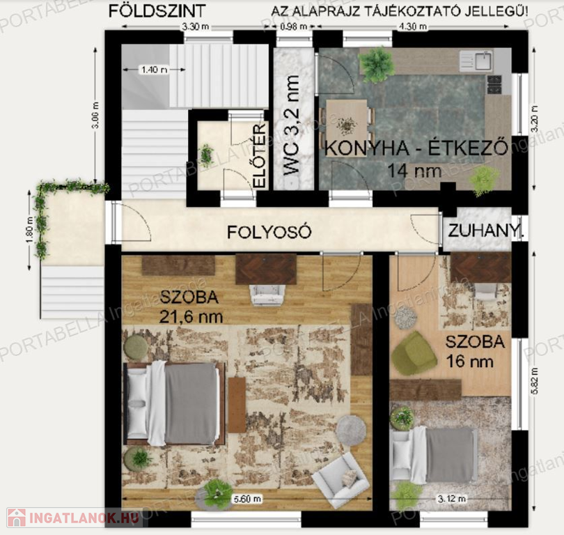 A ingatlan körbejárható, és tartozik egy hozzávetőlegesen 30 nm-es tároló, valamint egy zárható garázs, melyek további kényelmet biztosítanak a tárolás és parkolás szempontjából.