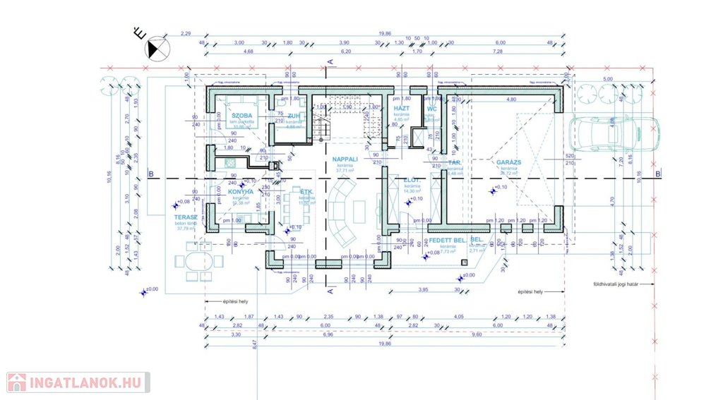 • 60 m²-es amerikai konyhás nappali kert- és teraszkapcsolattal