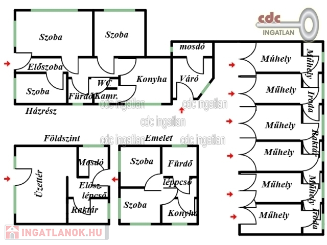 GANZTELEPEN ÖNÁLLÓ CSALÁDI HÁZ 6 ÁLLÁSOS AUTÓSZERELŐ MŰHELY, HÁZRÉSZ ÉS ÜZLET ELADÓ! XVIII. kerületben kínálom megvételre ezt az 1981-ben épült, 806 m2-es telken lévő, tégla építésű ingatlankomlexumot. Felosztását tekintve egy 150 m2-es, 2 szintes családi ház, lent üzlettel, fent 2 szobás, konyhás, cirkó fűtéses, klimatizált lakással. Tartozik hozzá egy 101 m2-es, 3 külön nyíló szobás, ablakos konyhás, cirkó- és padló fűtéses, hűtő-fűtő klímás, tégla építésű, részlegesen felújított házrész ÚJ NYÍLÁSZÁRÓKKAL és pincével. A 6 állásos műhelyben van szerelő aknás, küszöbemelős beállóval, kéziműhellyel, raktárral, ügyfél váróval, irodával, mosdóval, 3 fázisú árammal, 230/400V, ev relékkel, cirkó fűtéssel, (kondenzációs kazán radiátorokkal) és 3,5 KW hűtő-fűtő klíma, motoros szekcionált garázsapu, levegőrendszer kiépített végpontokkal, aknában kompresszor telepítési hellyel, riasztóval, udvar térkövezve, kapu elektromos toló, távvezérlős, igény esetén tovább vihető gépjárműjavító telephelyengedéllyel rendelkezik. Az ingatlan per- és tehermentes!