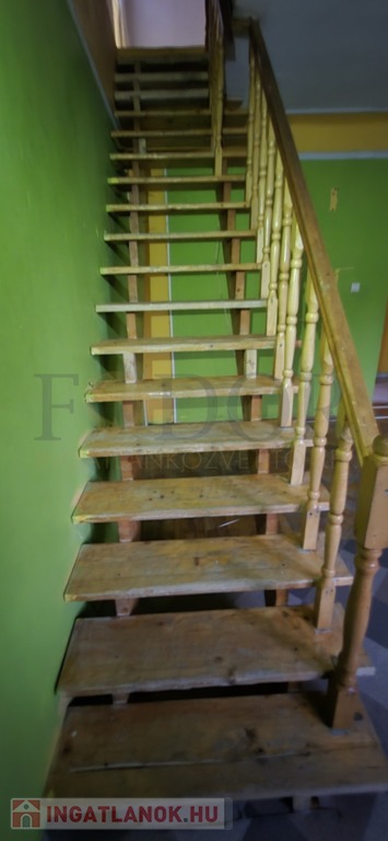 • Földszint: előszoba, közlekedő, egy szoba, konyha, fürdőszoba, külön WC, valamint egy 36 m²-es tágas nappali, fa lépcsővel az emeletre.