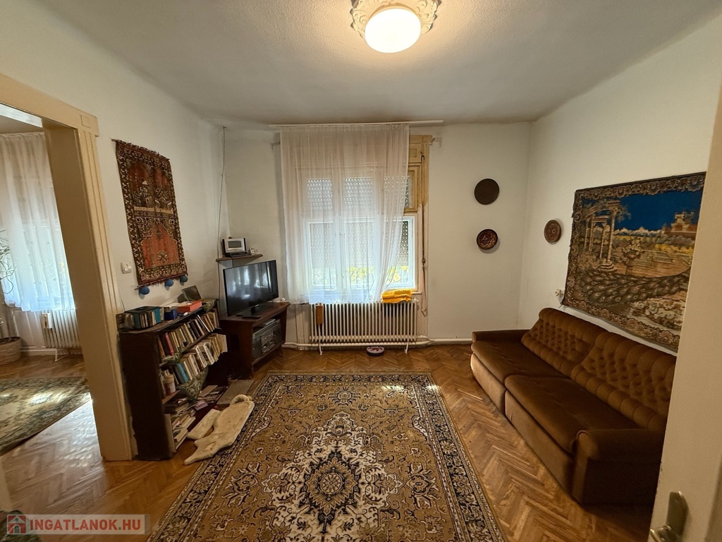 Csendes, alacsony forgalmú, zöldövezeti utcában eladó egy 80 m²-es, 2,5 szobás, azonnal költözhető családi ház, 919 m²-es, kiváló adottságú telken.