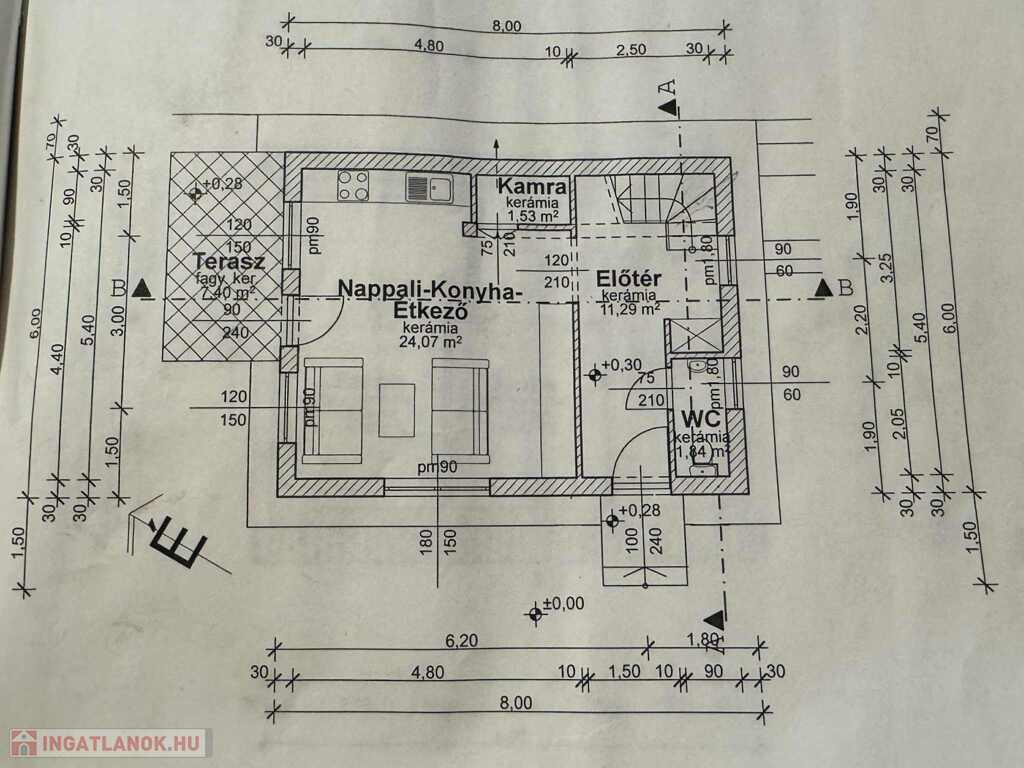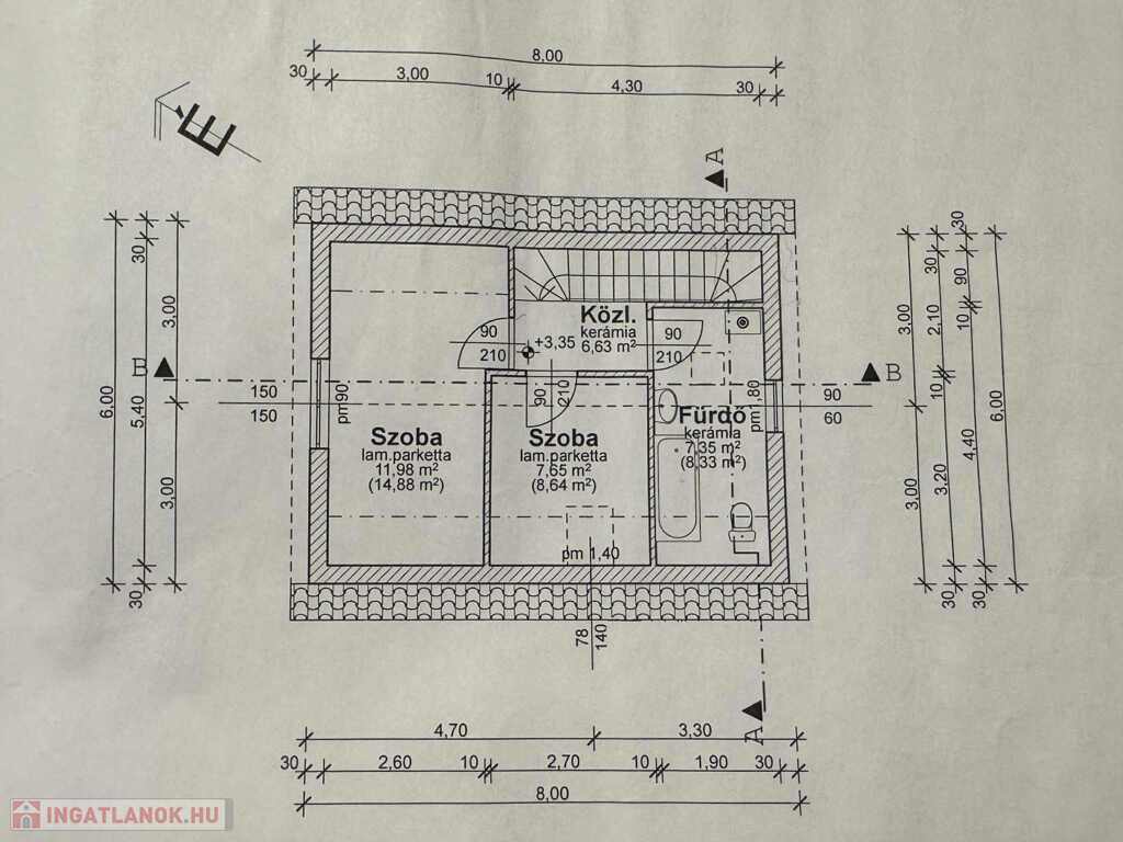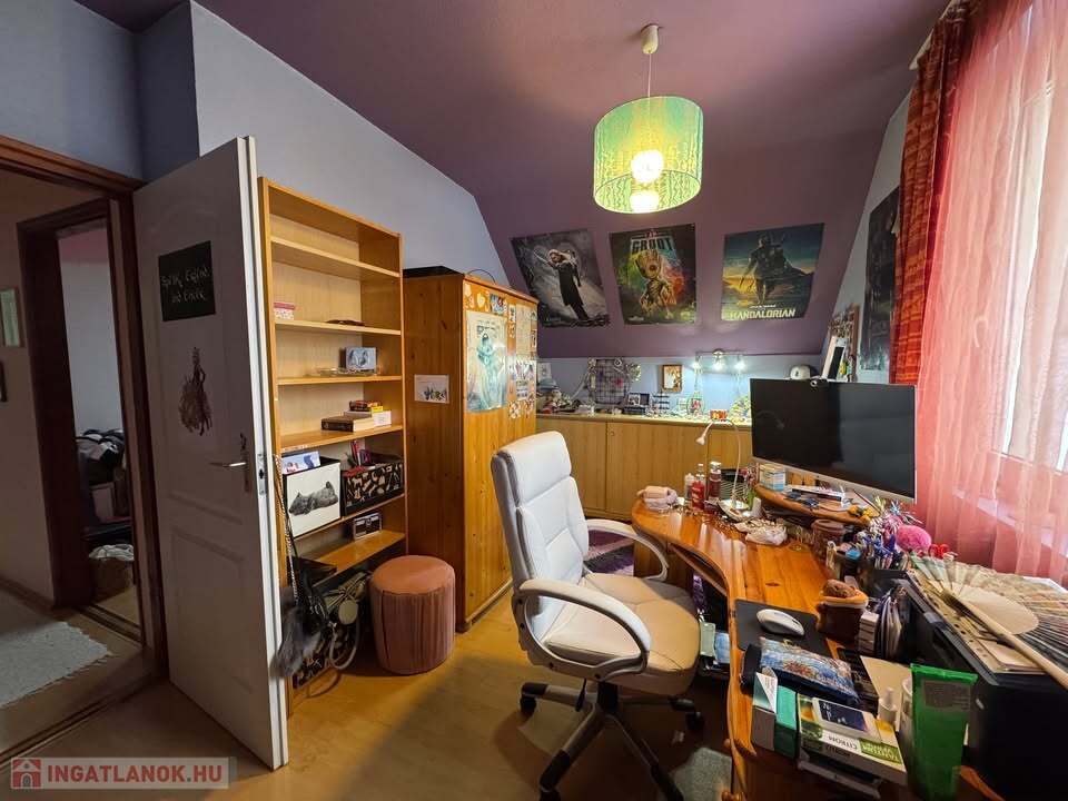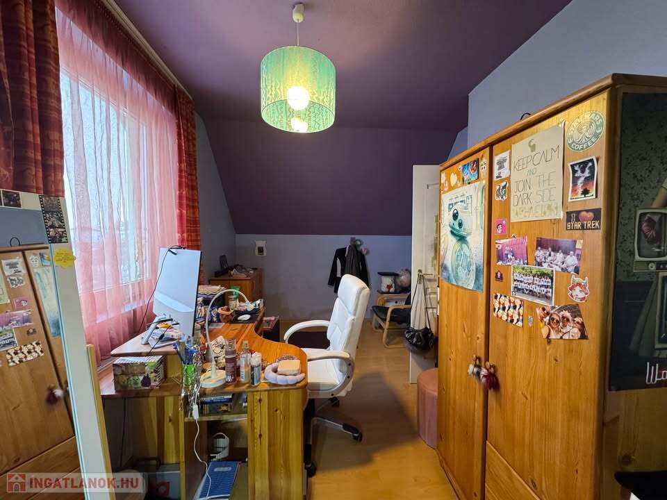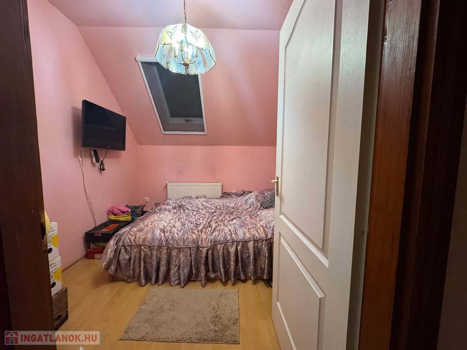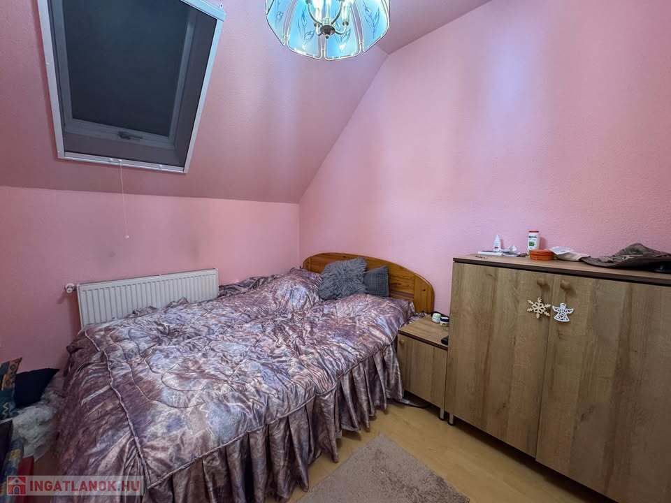 Az ingatlan 80 m2 alapterületű; 2 hálószoba + amerikai konyhás nappali, spájz, különálló WC, előszoba, lépcsőház, fürdőszoba, padlás.