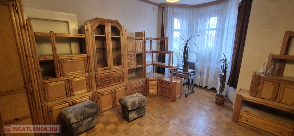 • Emelet (80 m²): eredeti burkolatokkal, de stabil, jól használható állapotban: Erkély (2m2), előtér, konyha+étkező, kamra, 2 szoba, fürdő, wc.