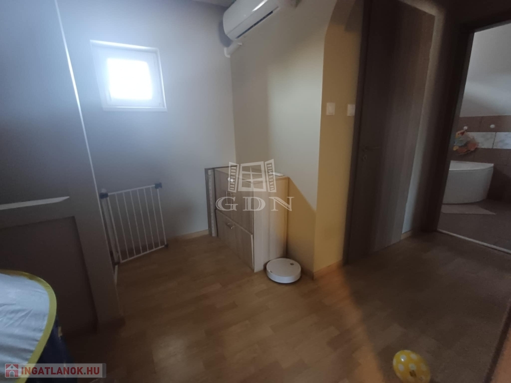 A szuterén szinten garázs, tárolók és vizes helységek is megtalálhatóak, 72 m2, az első emeleten nappali és szoba, étkező, gardrób, fürdő és mellékhelyiség, terasszal 74.5 m2, a felső szinten szintén vizes helysége, 2 szoba, terasz 43 m2.