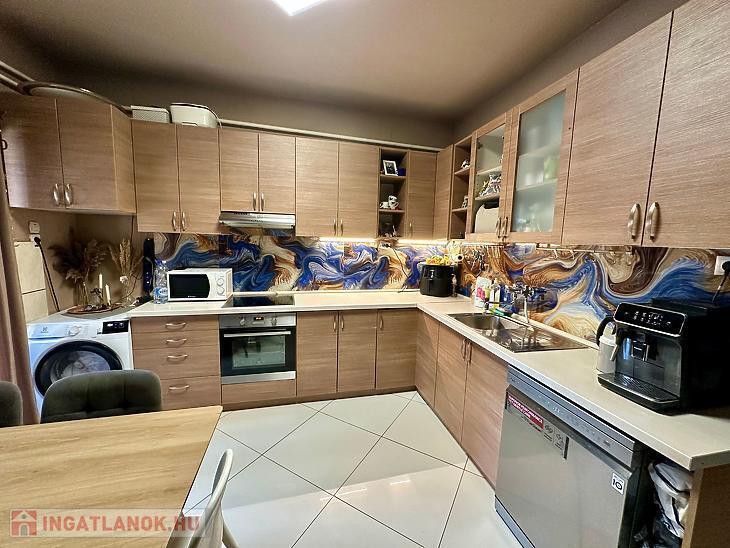 Az ingatlan tégla falazattal, beton alappal és beton födémmel épült, jó elosztású, AMERIKAI KONYHÁS NAPPALIVAL, TERASSZAL ÉS 40 NM-ES PINCÉVEL.