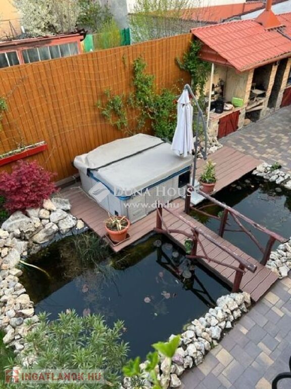 egy gyönyörű több generáció számára is alkalmas családi ház!A ház nagyon kellemes környezetben , kerti tó, kültéri Jacuzzi fedett grillterasz környezetében található.A rendezett udvarban több autó parkolására van lehetőség, a haza érkezőket elektromos kapu engedi be.A ház szerves részét képezi a már említett fedett grillterasz, mely mindenféle főzési , és sütési lehetőséget magában rejt, mert egy jól felszerelt konyha várja a szakácskodni vágyókat.Kellemes , szabadtéri időtöltés lehet , baráti társaságok fogadása, ezen a csodálatos környezetben.Az előszobából a házba belépve hatalmas terek szolgálják a kényelmünket.Kiemelném a fagerendás mennyezet szépségét, mely az alsószinten a helyiségeket jellemzi.A nappali mellett étkező és egy épített fatüzelésű , vízteres párkányra ülős kandalló növeli a komfort érzésünket.Innen a teljesen felszerelt, 2021.ben vásárolt kitűnő minőségű gépesített modern konyhába érkezünk .Tovább haladva egy háztartási helyiség ,két fürdőszoba és egy vendég szoba található, melyet ha elválasztanánk egy generáció lakhatására is alkalmassá lehet varázsolni.A zárt lépcsőházból az emeletre egy közlekedő folyosóra jutunk, ahonnan 3 szoba nyílik. A szobák mindegyikéből kitudunk jutni az emeleten épült teraszra.Ezen a szinten is található egy gyönyörű fürdőszoba.Az igényesen megépített Mediterrán stilúsú házból semmi sem hiányzik, minden adott, hogy az új tulajdonosa kellemes , igényes környezetben éljen.A közlekedés kitűnő, iskola , óvoda, bevásárlási lehetőség a közelben.Ha felkeltettem az érdeklődését, kérem hívjon , hogy megmutathassam ezt a gyönyörű, vonzó ingatlant.