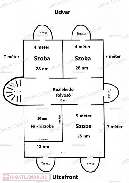-Emelet (kb94m²): 3 szoba (21 m², 21 m², 23m²), fürdőszoba káddal (17m²), közlekedő, lépcsőház