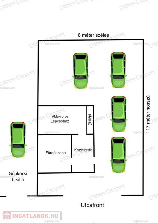 -Mélygarázs (kb108 m²): 3-4db autóbeálló mérettől függően + 1 fedett kerti parkolóhely, fürdőszoba, kazánház, közlekedő, lépcsőház