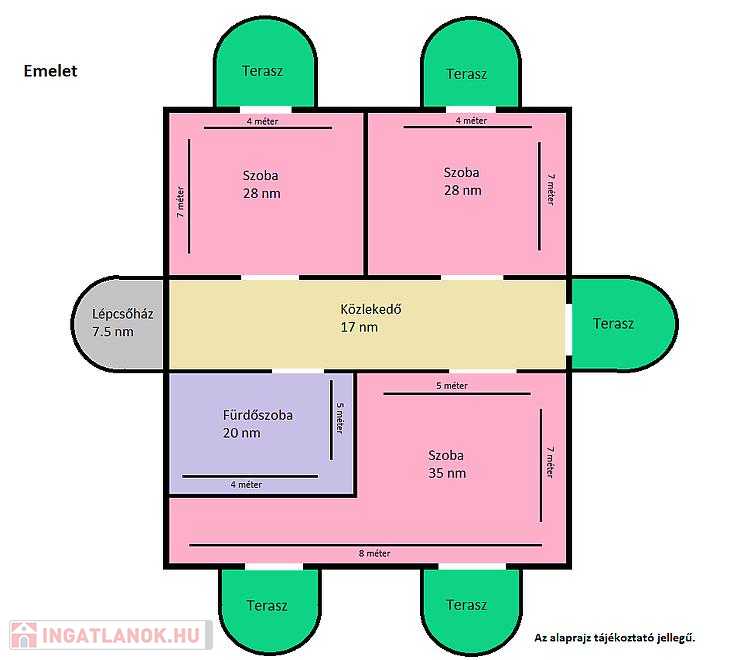 AZ EMELETEN a hangulatos közlekedőből HÁROM HÁLÓSZOBÁT ÉS EGY TÁGAS FÜRDŐSZOBÁT közelíthetünk meg. MINDEN SZOBÁHOZ tartozik egy ERKÉLY is.